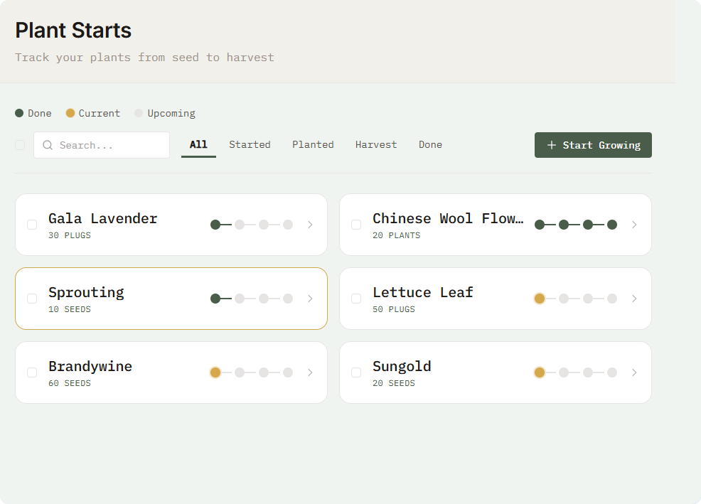 Track your seeds, plan your planting schedule, and follow every plant from its first sprout to the final harvest.